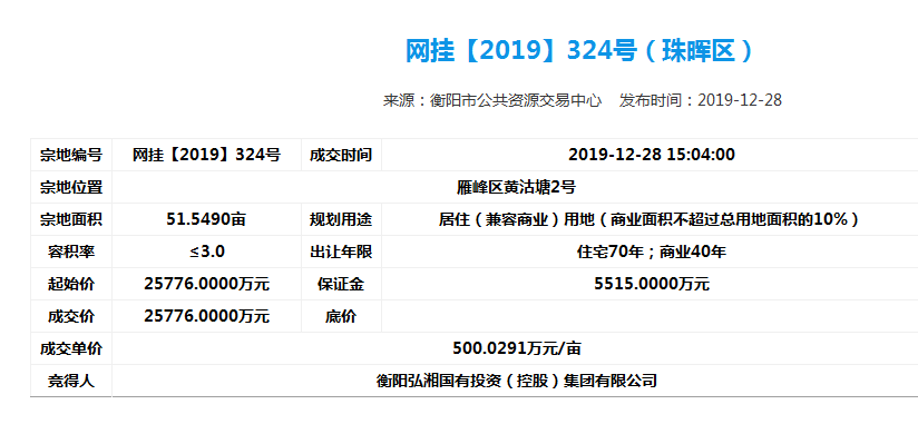 為了進一步做好市場化運行,弘湘國投以市場經(jīng)營為主體,向資本市場進軍,進一步做實做強國有資產(chǎn),增強自身活力。2019年12月28日下午,弘湘國投在市公共資源交易中心網(wǎng)站成功摘牌6宗共計523畝改制企業(yè)土地,摘牌總價超24億元,并于當日簽訂了《國有建設用地使用權公開出讓成交確認書》。2019年12月31日,弘湘國投與市自然資源和規(guī)劃局正式簽訂了《國有建設用地使用權出讓合同》。