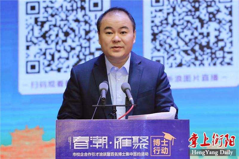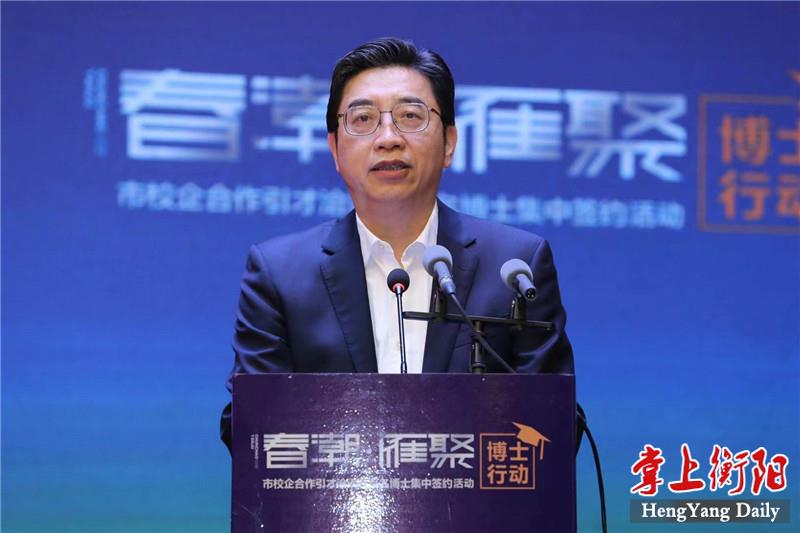 4月29日上午,“春潮·雁聚”博士行動——市校企合作引才洽談暨百名博士集中簽約活動在衡舉行,市委書記鄧群策在簽約儀式上向五湖四海的人才發(fā)出誠摯邀請,期望各位才俊用所學(xué)所得的智慧之光,照亮深入推進(jìn)“一體兩翼”建設(shè)的騰飛之城,在衡陽這片高質(zhì)量發(fā)展的熱土上成就輝煌事業(yè)、書寫精彩人生。市委副書記、市長朱健主持簽約儀式。