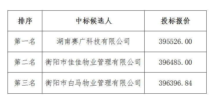 衡陽(yáng)視界科技發(fā)展有限公司物業(yè)服務(wù)項(xiàng)目中標(biāo)候選人公示
