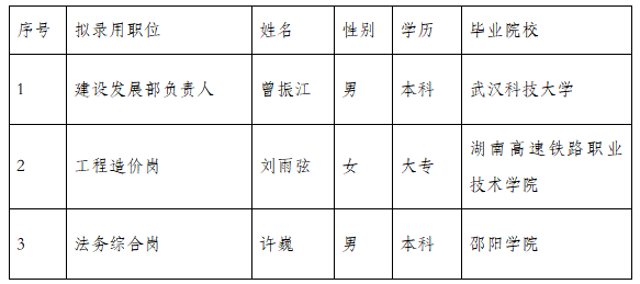 衡陽視界科技發(fā)展有限公司 擬錄用人員公示公告