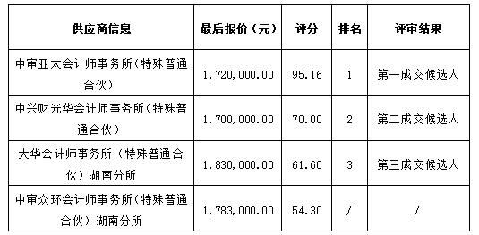 衡陽(yáng)市國(guó)有資產(chǎn)投資控股集團(tuán)有限公司的衡陽(yáng)市國(guó)有資產(chǎn)投資控股集團(tuán)有限公司(含下屬子公司衡陽(yáng)弘湘國(guó)有投資(控股)集團(tuán)有限公司和衡陽(yáng)市發(fā)展投資集團(tuán)有限公司)2023年度財(cái)務(wù)報(bào)表審計(jì)服務(wù)項(xiàng)目競(jìng)爭(zhēng)性磋商采購(gòu)項(xiàng)目于2023年12月6日結(jié)束,現(xiàn)將成交結(jié)果公告如下: