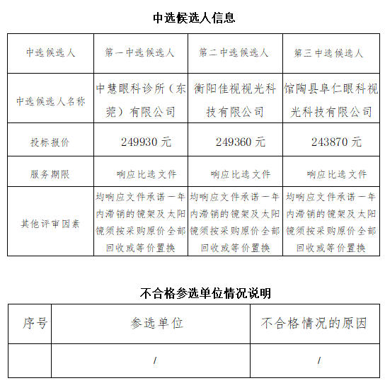 衡陽(yáng)(國(guó)際)眼鏡小鎮(zhèn)視光檢測(cè)中心鏡架合同太陽(yáng)鏡采購(gòu)公開(kāi)比選中選候選人公示